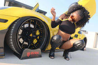 Gloss Black Spoke. Carbon Fiber Wrapped Lip. Gloss Black Barrel. Color-Matched Yellow Screws